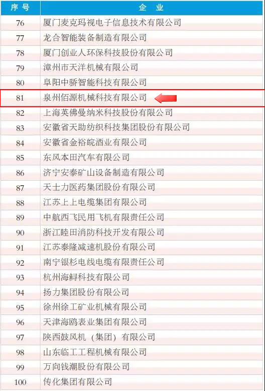 據(jù)中國工業(yè)報訊,泉州佰源機械科技有限公司入選2018年度中國工業(yè)影響力企業(yè)百強榜單。